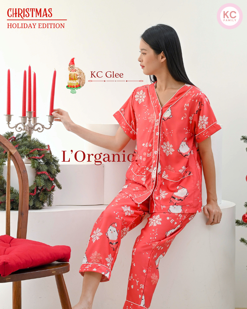 KC Glee in Jolly Santa Piyama Wanita Baju Tidur Lengan Pendek Celana Panjang